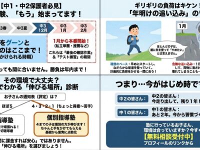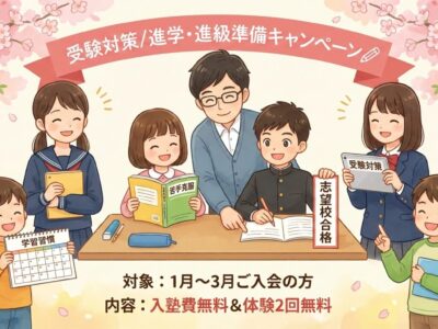 対象:中1、中2、小学生(定期テストのある児童)※塾生でなくても、どなたでも参加可能