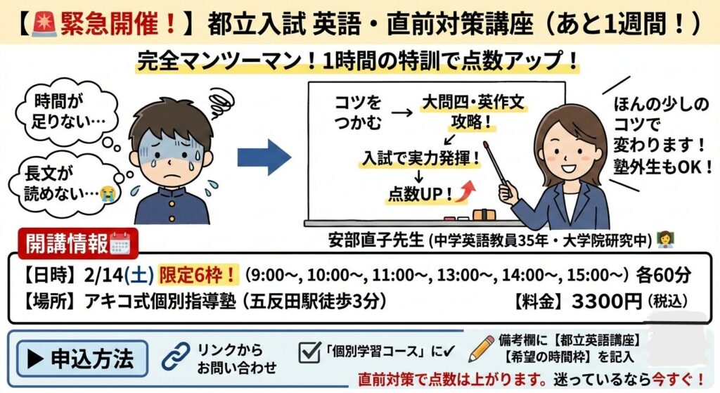 🚨緊急|都立入試 英語・直前対策講座